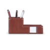 Confeccionada em couro legítimo, ecológico ou sintético. Duas abas para papéis, bolso para celular, porta cartões, porta caneta e lado direito porta bloco. Fechada por zíper. Impressão em baixo relevo.
